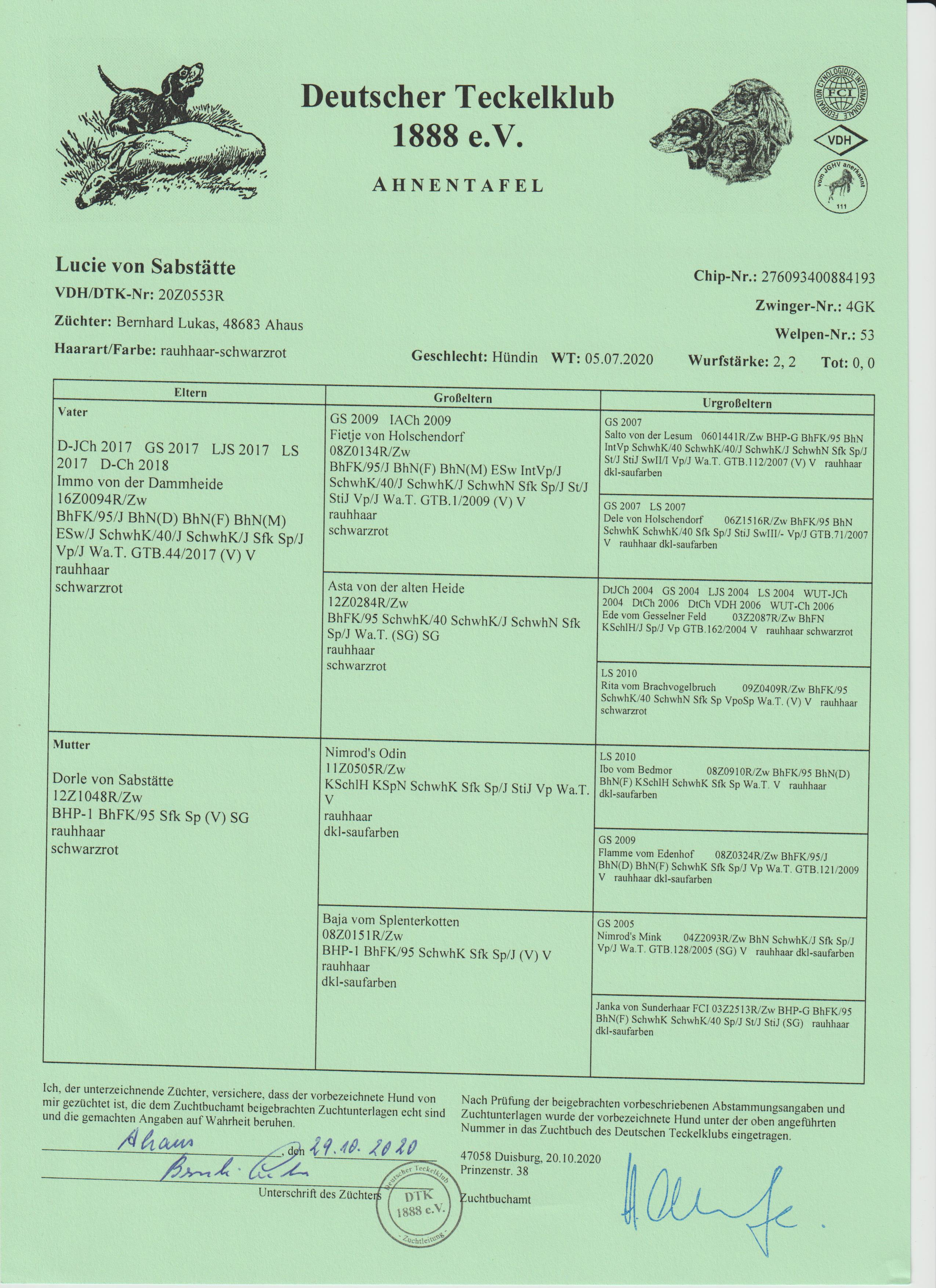 "Lucie von Sabstätte" VDH/DTK Nr. 20Z0553R/Zw WT: 05.07.2020